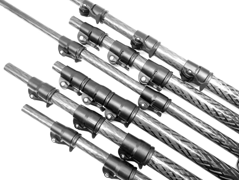 Carbon Teleskopsystem 3m – 4-teilig mit Kunststoffklemmung