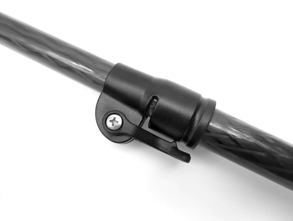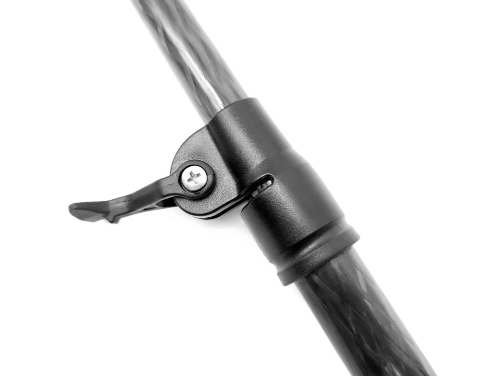 Das robuste Carbon sorgt für eine hohe Steifigkeit trotz geringem Gewicht. Die ergonomischen Kunststoffklemmstücke mit Hebel ermöglichen eine schnelle Verstellung ohne Werkzeug. Kompakt in der Transportlänge und vielseitig einsetzbar.