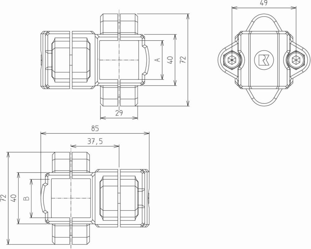 Kreuzklemmstück KV Für Rohre 30x30mm